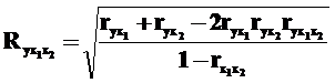 В общем случае формула коэффициента множественной корреляции выглядит так: