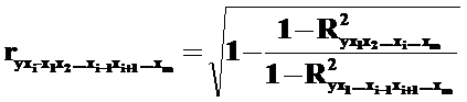 – показатель детерминации, но для модели, не включающей фактор xi.