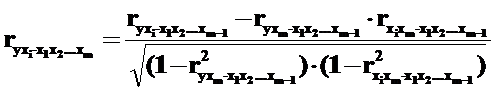 – при неизменном действии всех факторов, включенных в уравнение регрессии – коэффициент частной корреляции (m – 1)-го порядка.