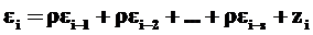 где остаток εi находится под влиянием величины остатка предыдущего наблюдения εi-1 и какого-либо текущего значения случайной переменной zi. Эта форма функции называется авторегрессионой функцией первого порядка (АР(1)), так как только один предшествующий период учтен при оценивании зависимости остатков.
