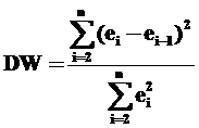 В-третьих, критерий Дарбина-Уотсона дает достоверные результаты только в относительно больших выборках, не менее 15 – 20 наблюдений.