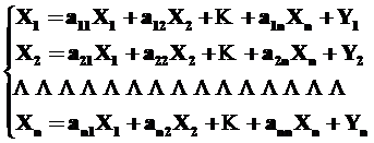 Это система из n уравнений, которые называются уравнениями распределения продукции отраслей производства по направлениям использования.