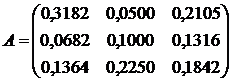 Коэффициенты капиталоёмкости приростов основных производственных фондов составляют следующую квадратную матрицу: