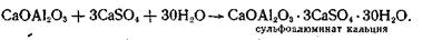 Кроме того, находящийся в материале сооружений трехкаль-циевый алюминат ЗСаО-А12О3 вступает в реакцию с сульфатом кальция в растворе, при этом образуется сульфоалюминат кальция по уравнению
