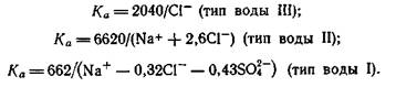 Ирригационный коэффициент. Этот коэффициент был предложен Стеблером как критерий оценки качества ирригационной воды. Ирригационный коэффицент Ка вычисляется для каждого типа вод по следующим формулам: