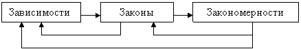 Зависимость – это характер связи между входными и выходными элементами входа и выхода, поддающихся осмыслению. Сами законы и закономерности могут способствовать формированию новых зависимостей (рис.16).