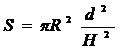 Íûíå ïðèìåíÿåòñÿ è äðóãîé âèä ôîðìóëû (1), ïîëó÷àåìûé ââåäåíèåì ðàäèóñà p, ðàâíîãî ñðåäíåìó àðèôìåòè÷åñêîìó ðàäèóñîâ îñíîâàíèé êîíóñîâ, ò. å. p=(R+r)/2; òîãäà èç ôîðìóëû (1) ïîëó÷àåì: S=2