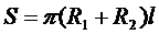 Àíàëîãè÷íî äëÿ ïëîùàäè áîêîâîé ïîâåðõíîñòè óñå÷åííîãî êîíóñà ñ ðàäèóñàìè îñíîâàíèé R1, R2 è îáðàçóþùåé l ïîëó÷àåòñÿ ôîðìóëà