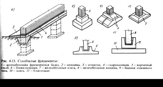 Отдельные опоры – несущие вертикальные элементы (колонны, столбы, стенки) передающие нагрузку от перекрытий и других элементов здания на фундаменты.