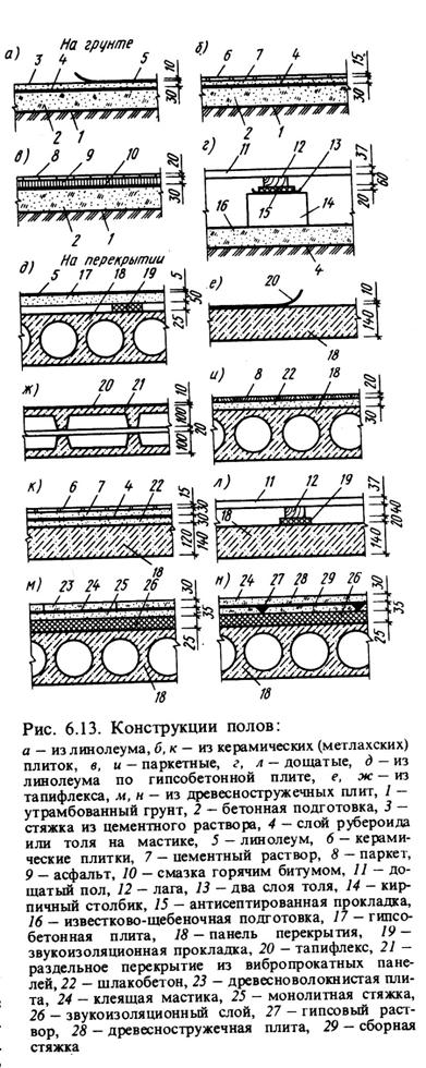 Полы устраивают по перекрытиям или непосредственно по грунту.