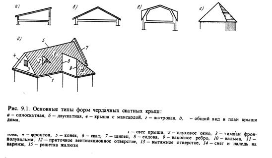Формы скатных крыш зависят от формы здания в плане и архитектурных соображений.