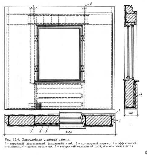 щиной 20-40 мм и с внутренней стороны - отделочный слой из цементного раствора толщиной 10-15 мм. Хорошим материалом для однослойных панелей является ячеистый бетон плотностью 600-700 кг/м* ,керамзитобетон класса В5 плотностью кг/ м*.