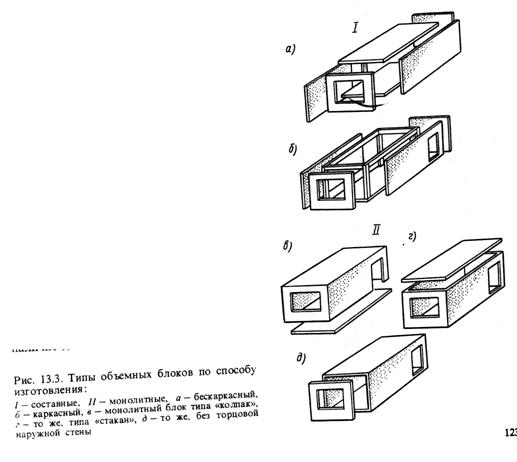 По способу изготовления обьемные блоки бывают составные из отдельных панелей и монолитные.