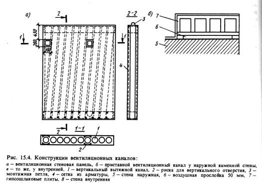располагают во внутренних стенах или устраивают приставные вентиляционные блоки из шлаковых плит. В приточно-вытяжных системах вентиляции воздух поступает в помещения через приточную камеру.
