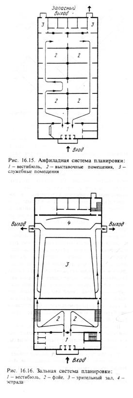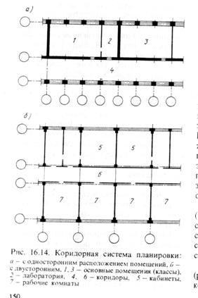 Общественные здания предназначены для временного пребывания людей в связи с осуществлением в них различных функциональных процессов. Основными планировочными схемами общественных зданий являются коридорная, анфиладная, зальная и смешанная.