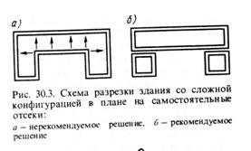 Если здание имеет сложную или ассиметрическую форму в плане, то его следует разделить антисейсмическими швами на отсеки простой формы без входящих углов.