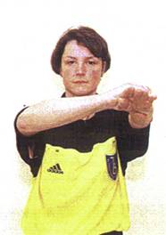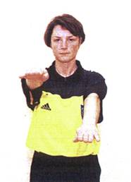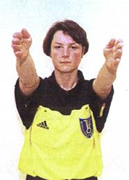 При назначении свободного броска или броска из-за боковой линии судьи жестом должны немедленно показать направление броска (жесты 7 или 9).