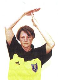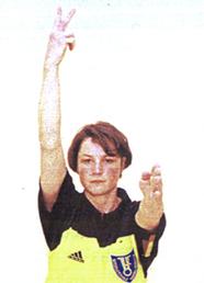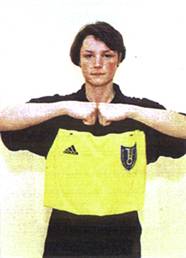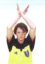 16:10 При тайм-ауте судья должен четко указать исключение виновному игроку и проинформировать секретаря / секундометриста с помощью установленного жеста, т. е. с помощью поднятых над головой скрещенных рук (жест № 15).