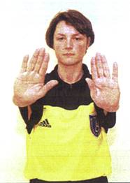 Тайм-аут в этом случае является обязательным. После консультации друг с другом судьи используют четкий жест, и игра возобновляется по свистку (2:8d, 15:5).