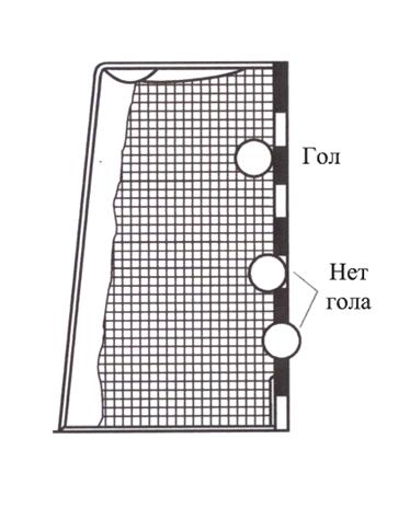 9.1. Гол засчитывается, если мяч всей своей окружностью пересекает всю ширину линии ворот (смотри диаграмму 4), при условии, что не было нарушения правил со стороны игрока, бросавшего мяч, или другого члена команды до или во время броска.
