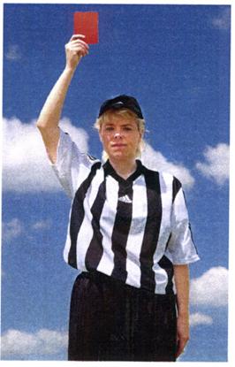 16.7. После объявления тайм-аута судьи должны четко показать дисквалификацию игроку или официальному лицу с помощью красной карточки. (Жест 13; размеры «красной карточки» примерно 9Х12 см), а также проинформировать об этом хронометриста/секретаря.