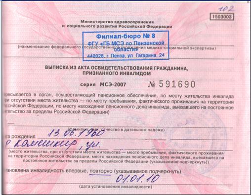 ü Дата освидетельствования. Это может быть конкретная дата, а может быть и период, когда инвалид проходил освидетельствование в МСЭ. Продолжительность такого периода различна и зависит от индивидуальных обстоятельств.
