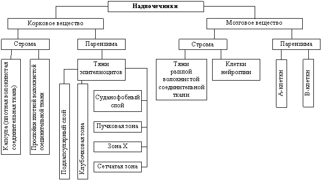 1 – Клеточный состав коркового и мозгового веществ надпочечников