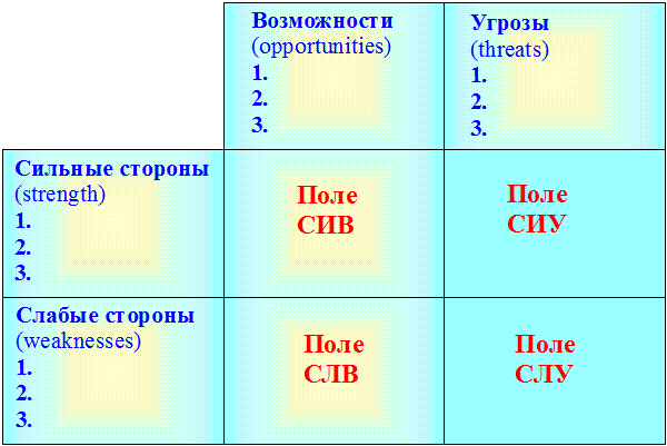 Для пар поля СИВ разрабатывается стратегия по использованию сильных сторон с использованием возможностей, полученных из внешней среды.