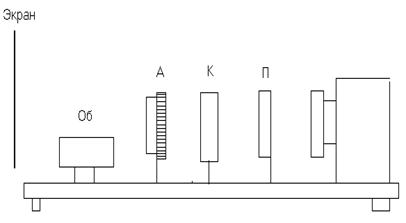 Приборы и принадлежности: Оптическая скамья ФОС-17; люксметр; поворотный столик с круговой шкалой. Поляроид съемный; поляроид встроенный в держателе с круговой шкалой; диапозитив с тремя круглыми кристаллическими пластинами (оптические оси параллельны плоскости пластин); модели из органического стекла; кристалл исландского шпата; щель съемная; стеклянная пластина.