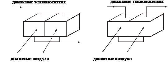 Рис.17.16. Схемы соединения калориферов: а – по воздуху; б – по теплоносителю. |