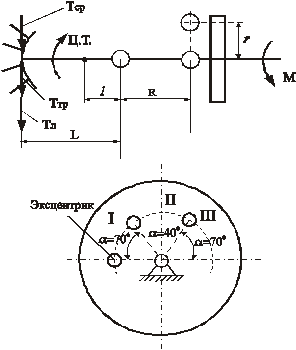 Механический момент обусловлен касательными составляющими усилиями Т от действующих на пальце эксцентрика сил и радиусом эксцентрика r, т. е. имеет место равенство: