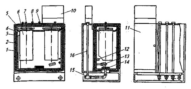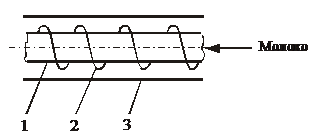 Рис.22.12. Схема ИК излучателя: 1-кварцевая трубка; 2-спираль; 3-рефлектор. |