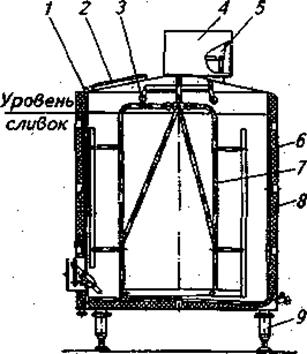 Нагрев происходит превращением электрической энергии в механическую, а затем в тепловую, т. е. в энергию молекулярного трения. Общий к. п.д. их не ниже 75 %, n=4000…5000 об/мин. Схема такого пастеризатора показана на рисунке 22.13.