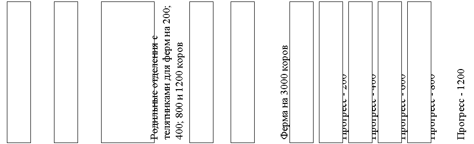 Для ферм к. р.с. при беспривязном содержании животных на глубокой подстилке или в боксах, рассчитанных на 200; 400; 600 и 800 коров выпускают комплекты «Прогресс - 200»,(400; 600; 800). Эти комплекты увязаны с типовыми решениями помещений ферм.