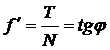 Угол φ называется углом скользящего резания, а отношение величины касательной силы Т к нормальной – называется коэффициентом скользящего резания :
