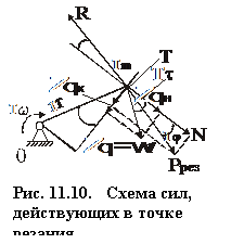 Рис. 11.3. – Схема сил, действующих на материал при рубке: