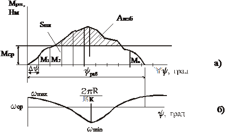 Рис.11.12. Диаграмма моментов резания (а) и угловой скорости рабочего вала (б).