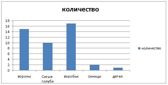 В своей работе мы уделили внимание именно городским птицам. Так, мы сделали вывод, что в нашем районе чаще встречается домовый воробей, сизый голубь, ворона, сорока, редко синица и совсем редко птицы других видов.