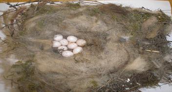 За многие годы видовой состав птиц стал сравнительно беден. Причиной этого является хозяйственная деятельность человека, бытовые и химические отходы, бесконтрольное использование лекарственных трав и кустарников/облепиха, шиповник. Нам пришлось наблюдать это грустное нарушение экологической цепочки деятельностью человека. Синица, за которой мы наблюдали, устроила себе гнездо в почтовом ящике, но отравилась химикатами и не смогла высидеть птенцов. Это гнездо принесли нам в школу. (Фото). Будущих птенцов спасти не удалось.