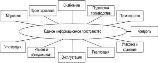 Выполнить эти требования позволяет комплексная автоматизация управления предприятием, которая в соответствии с современными стандартами опирается на концепцию единого информационного пространства, охватывающего, такие направления деятельности как проектирование, технологическая подготовка, производство, обеспечение необходимыми ресурсами, сбыт готовой продукции и т. п.