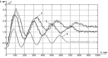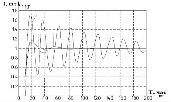 1 –с П-регулятором; 2 - с ПИ-регулятором; 3 - с ПИД-регулятором