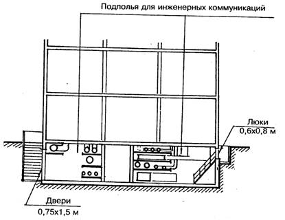 Рис. 3. Размещение инженерного оборудования и коммуникаций в подвальных этажах