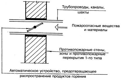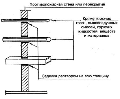 Рис. 12. Пересечение противопожарных стен коммуникациями с пожароопасными веществами и материалами
