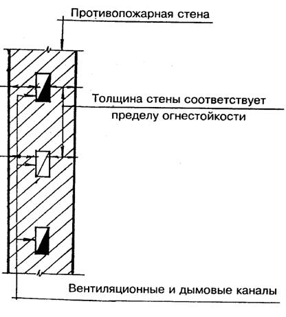 Рис 11. Размещение вентиляционных и дымовых каналов в противопожарных стенах