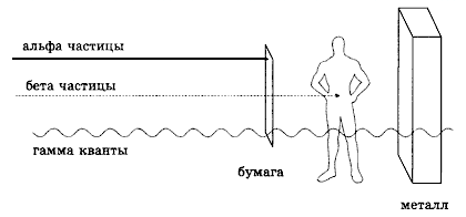 Рис. 3. Схематическое изображение проникающей способности различ-ных излучений.