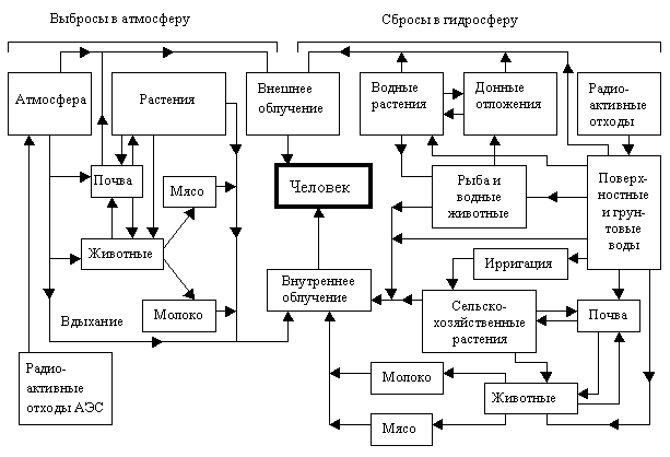 Рис.11. Пути воздействия радиоактивных отходов АЗС на человека.