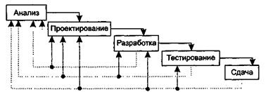 Рис. 2.3. Реальный процесс разработки по каскадной схеме