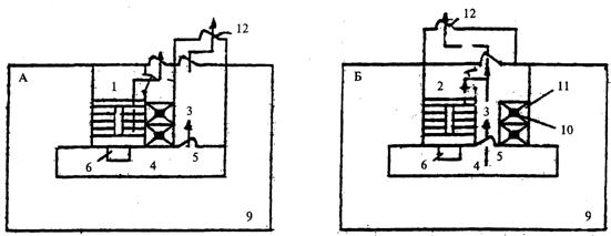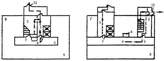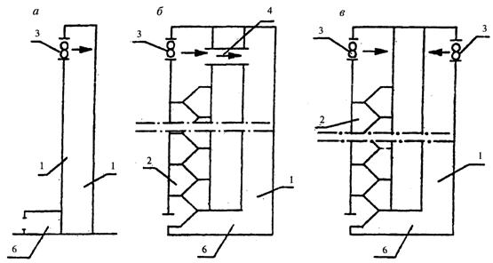1 — лифтовая шахта; 2 — лестничная клетка; 3 — вентилятор; 4 — вентиляционный канал; 5 — рассечка; 6 — вестибюль