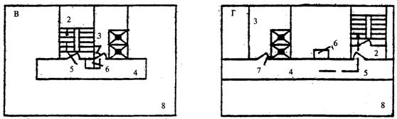 Рис. 1. Планировки А, Б, В и Г лестнично-лифтовых узлов
