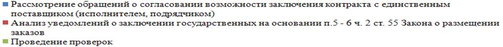 В 2012г количество контрактов, гражданско-правовых договоров, заключенных вследствие обстоятельств непреодолимой силы, необходимости срочного медицинского вмешательства (п.6 ч.2 ст.55 Закона о размещении заказов), возросло в 2,2 раза. В основном контракты (договора гражданско-правового характера) на основании п.6 ч.2 ст.55 Закона о размещении заказов заключались учреждениями здравоохранения. Имели место случаи неправомерного заключения данных контрактов. Для предотвращения нарушений Закона о размещении заказов вопрос о правомерности заключения контрактов (договоров гражданско-правового характера) рассматривался: